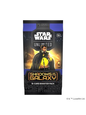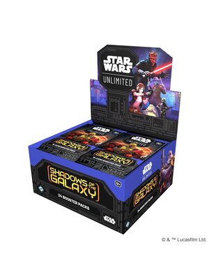 Enter a galaxy of endless possibilities in Star Wars: Unlimited! In this fast-paced, easy-to-learn trading card game, you and your opponent face off in exciting head-to-head battles full of iconic Star Wars characters. In this booster pack display for the game's second set, Shadows of the Galaxy, you'll find 24 individually wrapped booster packs. Each pack contains 9 common cards, 3 uncommon cards, 1 rare or legendary card, 1 leader, 1 base/token, and 1 foil card.