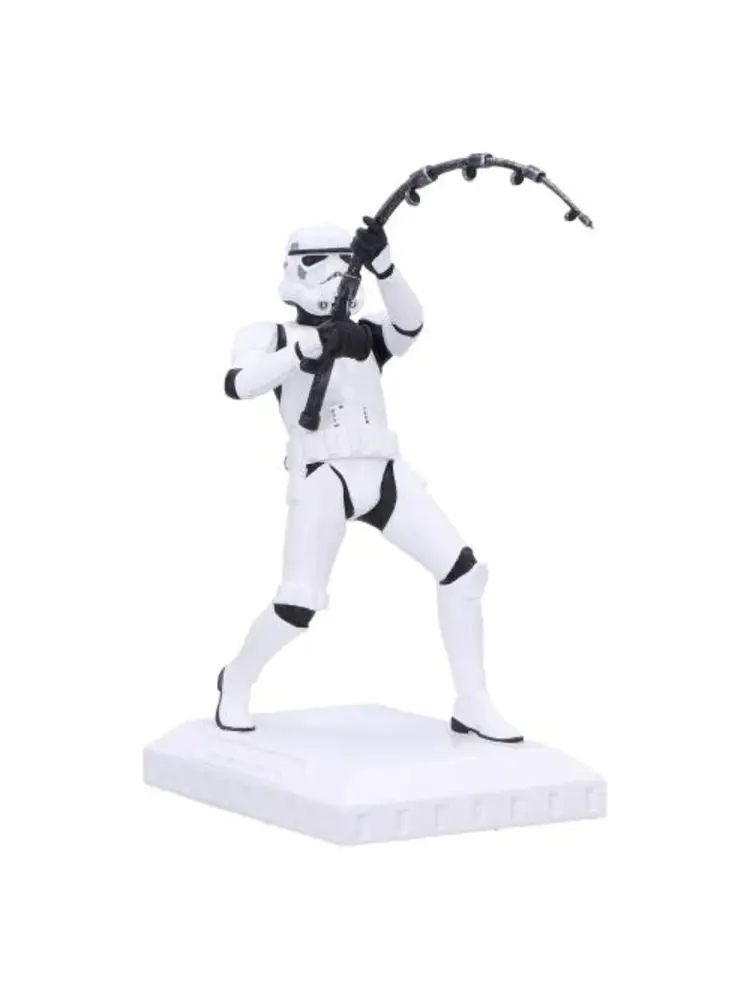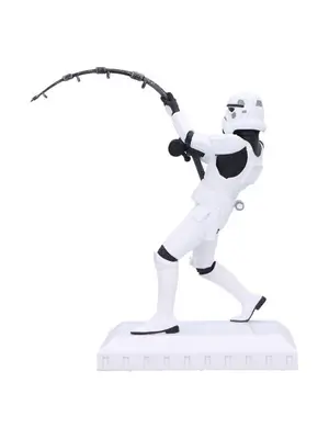 Crafted from high-quality resin, the What a Catch figurine showcases an Original Stormtrooper skillfully holding and pulling back his fishing rod, ready to reel in his latest catch. The attention to detail in the hand-painted finish brings this galactic fisherman to life, making it a standout piece in any display. This fun representation of the Stormtrooper adds a playful twist to the traditional memorabilia, making it a delightful conversation starter for fans and collectors alike.