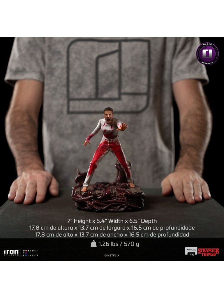 monster she is facing, Iron Studios proudly present their statue "Eleven - Stranger Things - Art Scale 1/10", with the hero protagonist of the show praised as one of the greatest successes of the Netflix streaming service.