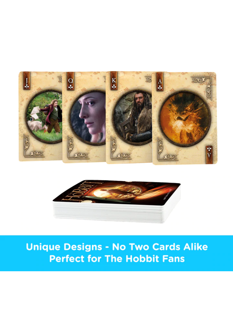 UNIQUE DESIGN ON EVERY CARD: The Hobbit deck of playing cards includes 54 cards (52 playing cards and 2 jokers). Every single playing card features its own distinct The Hobbit themed design and art. No two cards are alike