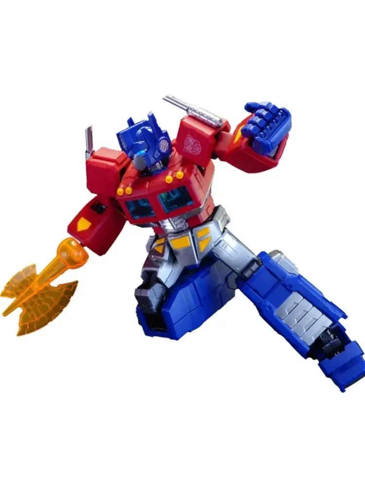 The magnetic light module enhances the figure with glowing eyes and a removable Matrix of Leadership. Rich accessories and weapons, including a jet pack, laser cannon, and energon axe, provide endless display possibilities. Designed for easy assembly, this figure ensures a hassle-free setup, making it the perfect addition to any Transformers collection.