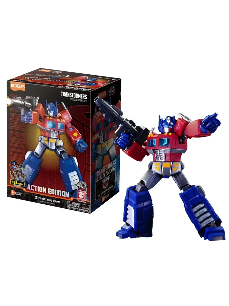 Transformers Action Edition 01 - G1 Optimus Prime from Blokees offers an officially licensed, highly detailed figure that brings the iconic leader to life. Standing at 18cm tall, G1 Optimus Prime provides a more commanding presence. With 45 movable joints and a mechanical skeleton, it allows for precise and dynamic posing. Additionally, G1 Optimus Prime consists of 188 pieces, making it more intricate and complex to assemble, ensuring a satisfying and detailed building experience.